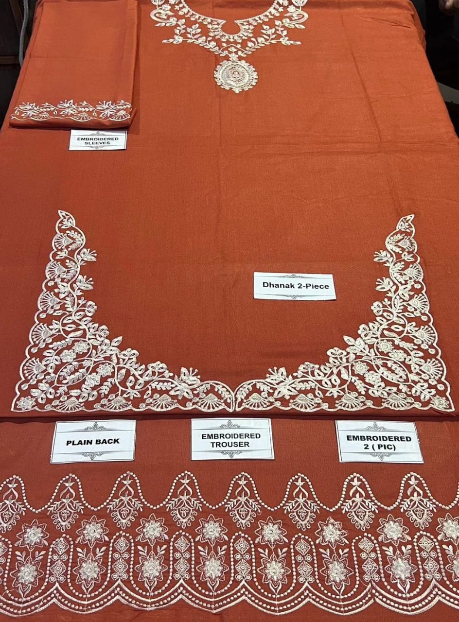 2 Pcs Women's Dhanak Unstitched Embroidered Suit-KS