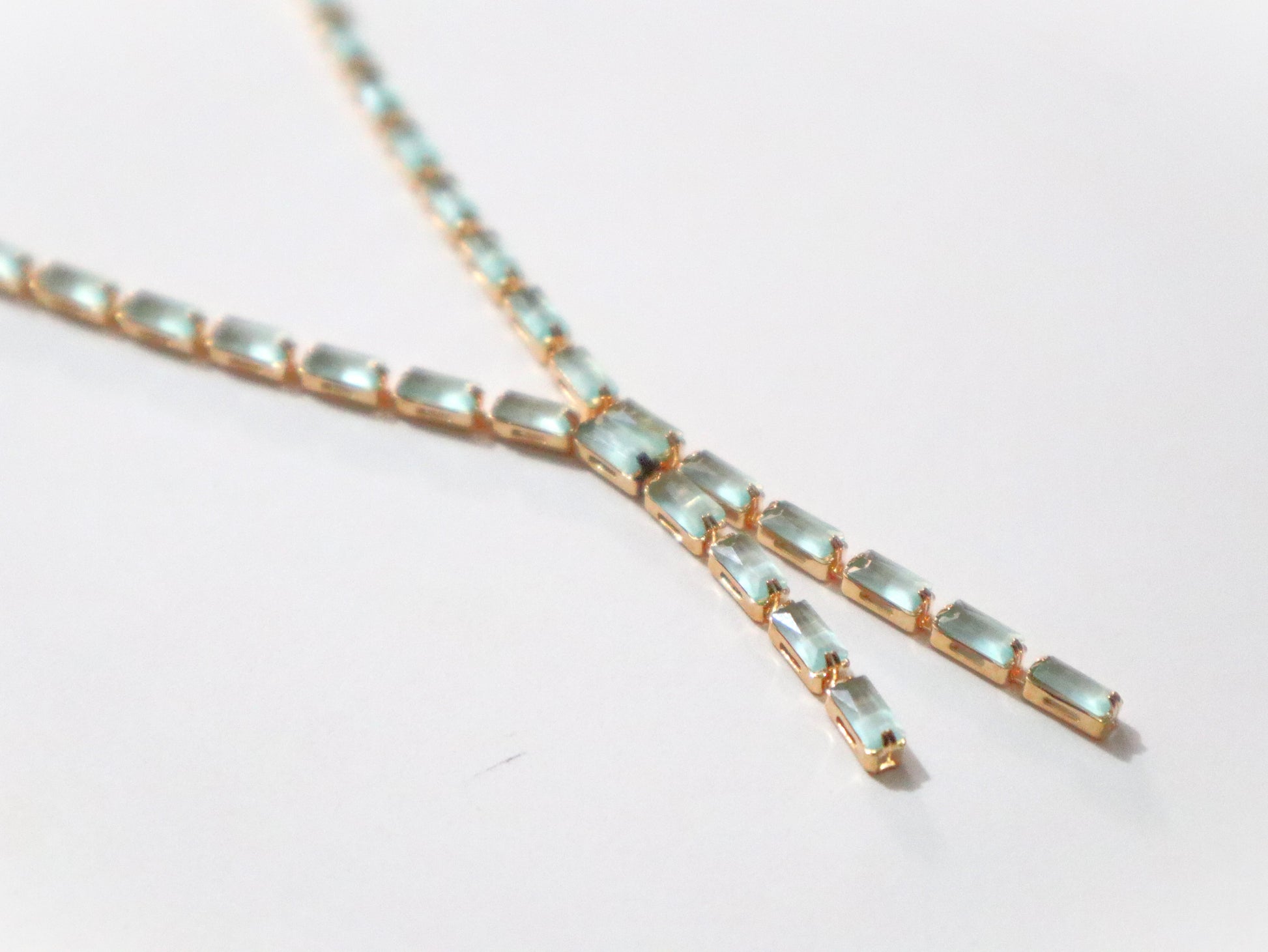 💎 Stunning Jewelry Set: Includes a sleek necklace and matching drop earrings featuring tapered aqua baguette crystals.