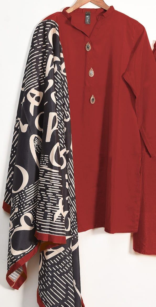 Grip Silk Plain Suit -3 Pcs Stiched-KD03